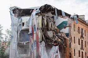 Жанровая фотография. Снос старого аварийного расселенного жилого дома на площади Ленина, на месте которого будет возведен новый жилой дом.