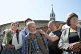 Участники акции, посвященной годовщине "демонстрации семерых" 1968 г., у Лобного места на Красной площади.