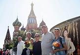 Участники акции, посвященной годовщине "демонстрации семерых" 1968 г., Татьяна Баева (слева) и Павел Литвинов (в центре) у Лобного места на Красной площади.