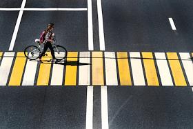 Жанровая фотография. Велосипедист на пешеходном переходе.