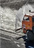 Жанровая фотография. Поливальная машина во время утреннего пролива улицы .