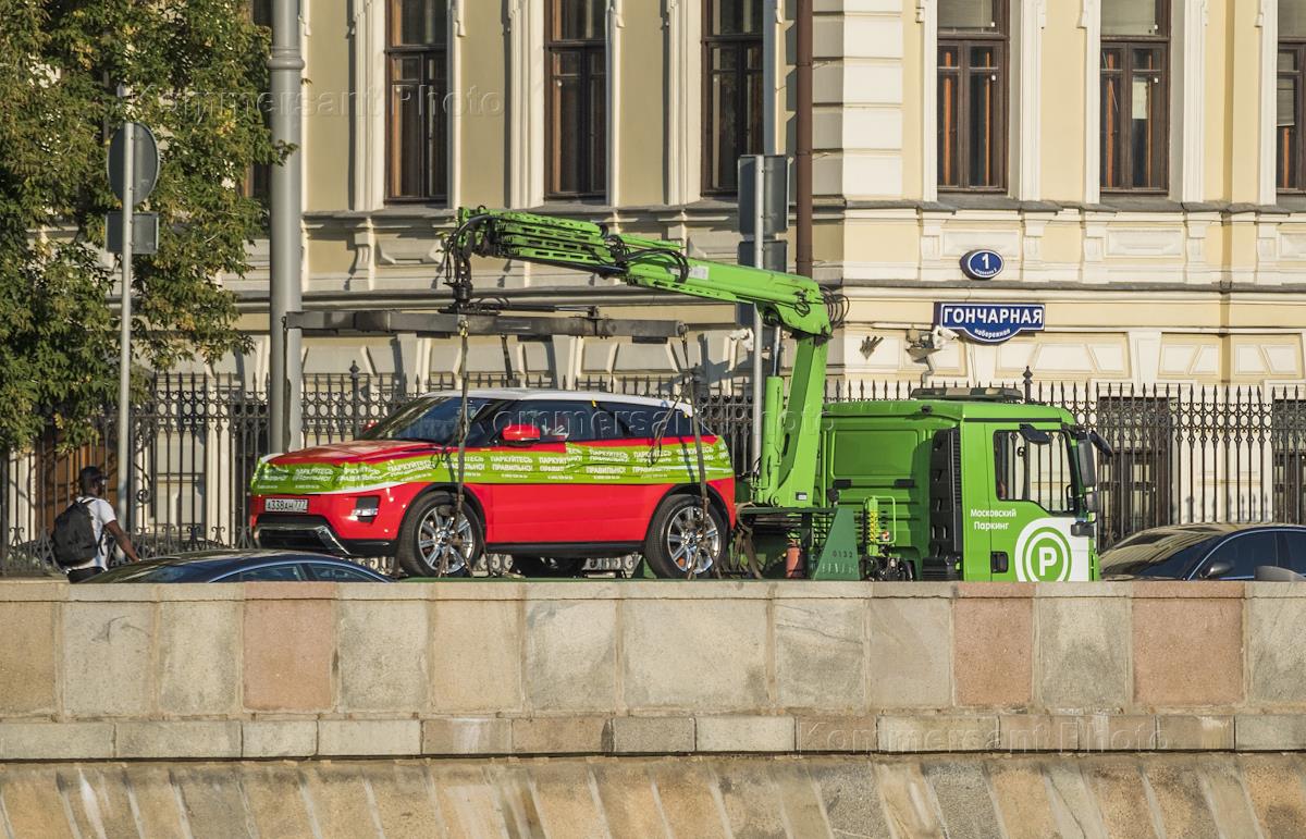 Жанровая фотография. Эвакуатор на Гончарной набережной во время эвакуации автомобиля.