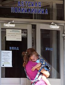Жанровая фотография. Женщина с ребенком у входа в детскую поликлинику.
