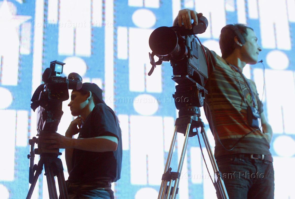 Телеоператоры во время съемки заключительного концерта телевизионного проекта Первого канала "Фабрика звезд - 5". Концерт прошел в спортивном комплексе "Олимпийский".