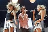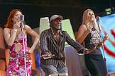 Певцы Пьер Нарцисс (в центре) и Ирсен Кудикова (справа) выступают на заключительном концерте телевизионного проекта Первого канала "Фабрика звезд - 5". Концерт прошел в спортивном комплексе "Олимпийский".