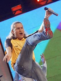 Певец Стас Пьеха во время финального концерта проекта "Фабрика звезд - 5" под руководством Аллы Пугачевой. Концерт состоялся в спорткомплексе "Олимпийский".