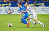 РПЛ. Чемпионат России по футболу 2018/2019. 6 тур. Матч между командами "Ростов" (Ростов-на-Дону) и "Рубин" (Казань) на стадионе "Ростов Арена". Игрок команды "Ростов" Дмитрий Скопинцев (слева) и игрок команды "Рубин" Виталий Устинов (справа) во время матча.