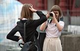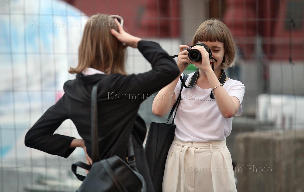 Жанровая фотография. Девушки фотографируются на Красной площади.