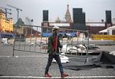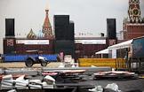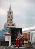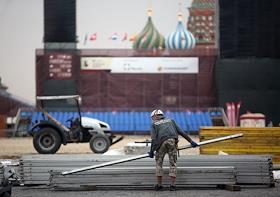 Демонтаж декораций XI Международного военно-музыкального фестиваля "Спасская башня" на Красной площади.