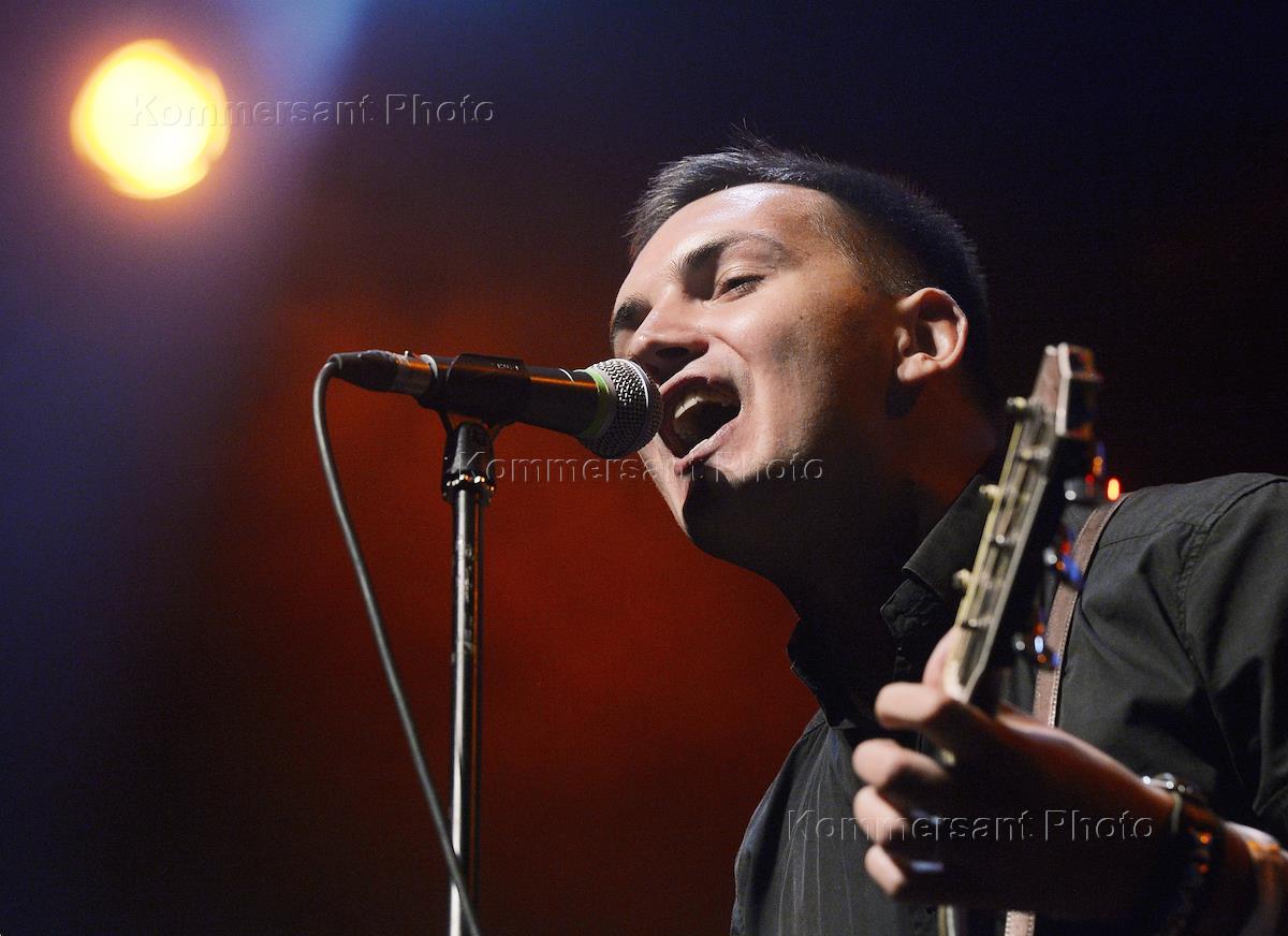 Форум левых сил с участием кандидата в мэры Москвы от КПРФ и лево-патриотических сил Вадима Кумина прошел в Главclub Green Concert. Лидера группы "7Б" Иван Демьян во время выступления.
