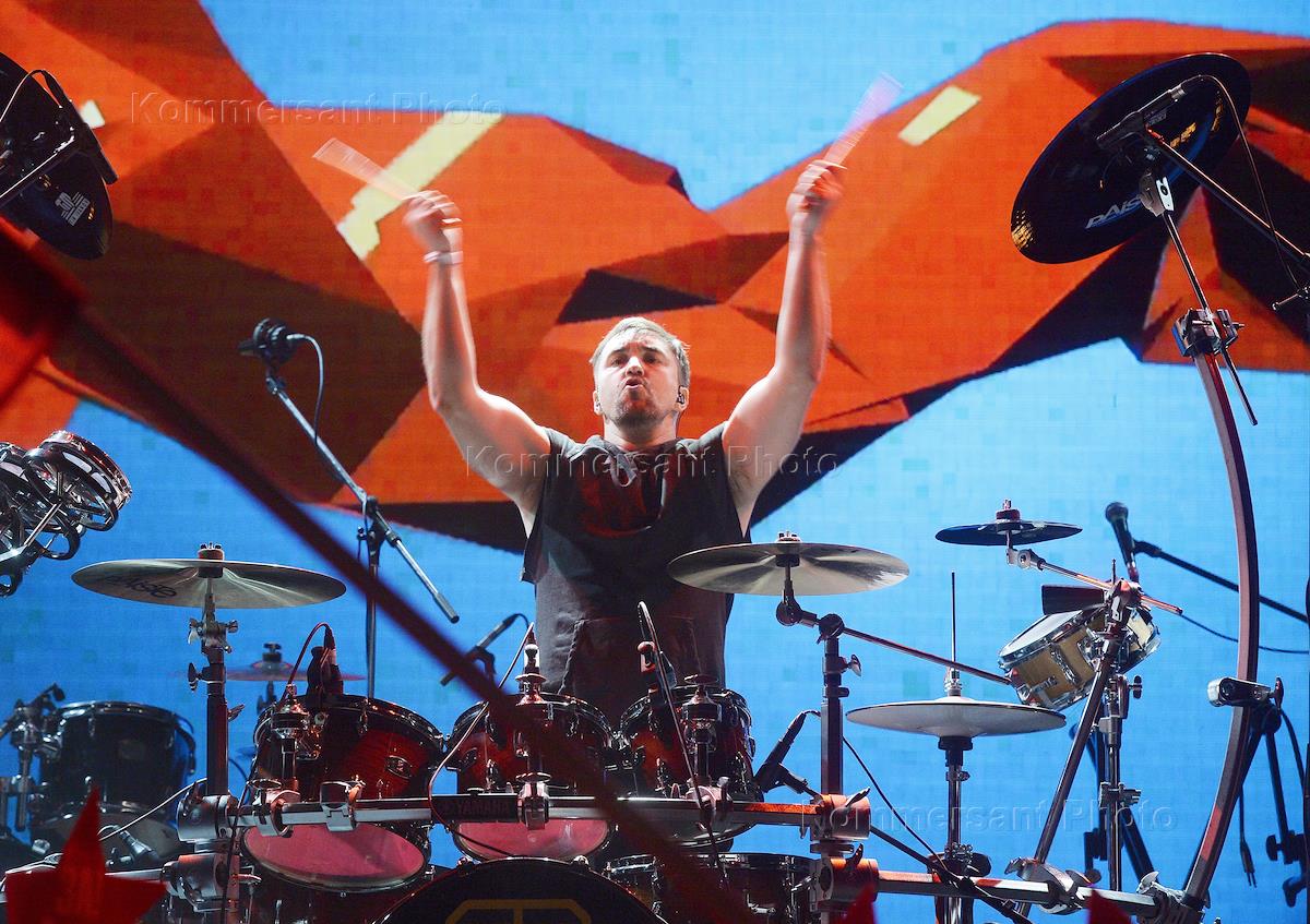 Форум левых сил с участием кандидата в мэры Москвы от КПРФ и лево-патриотических сил Вадима Кумина прошел в Главclub Green Concert. Барабанщик Тим Иванов во время выступления.