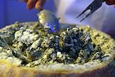 Прием, посвященный открытию выставки "Bvlgari. Очарование женственности. Великолепие римских драгоценностей", прошел в Доме Пашкова. Жанровая фотография. Сыр "рокфор" на тарелке.