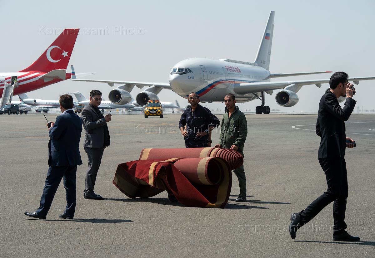 Рабочая поездка президента России Владимира Путина в Иран. Подготовка к церемонии встречи президента России Владимира Путина в аэропорту Мехрабад.