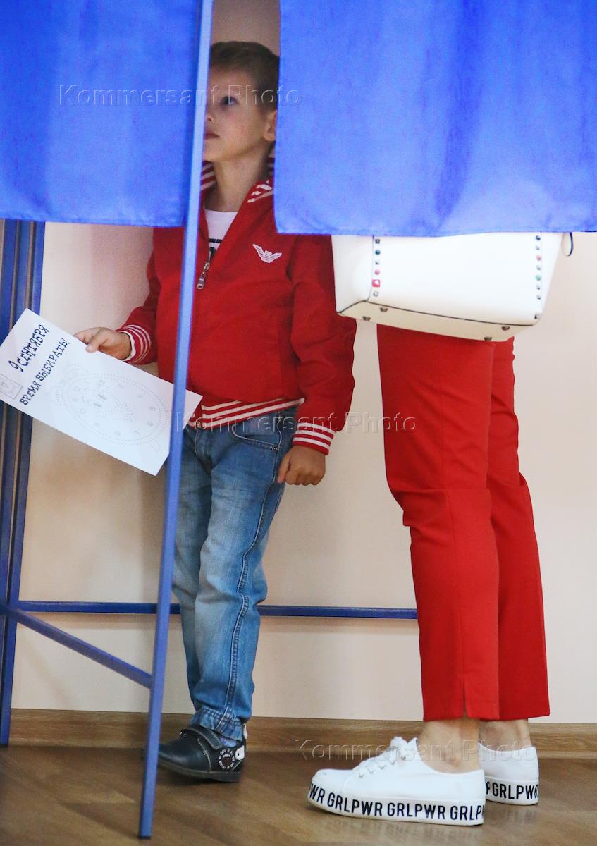 Единый день голосования. Избиратели во время голосования на избирательном участке в поселке Водопадный Аксайского района.