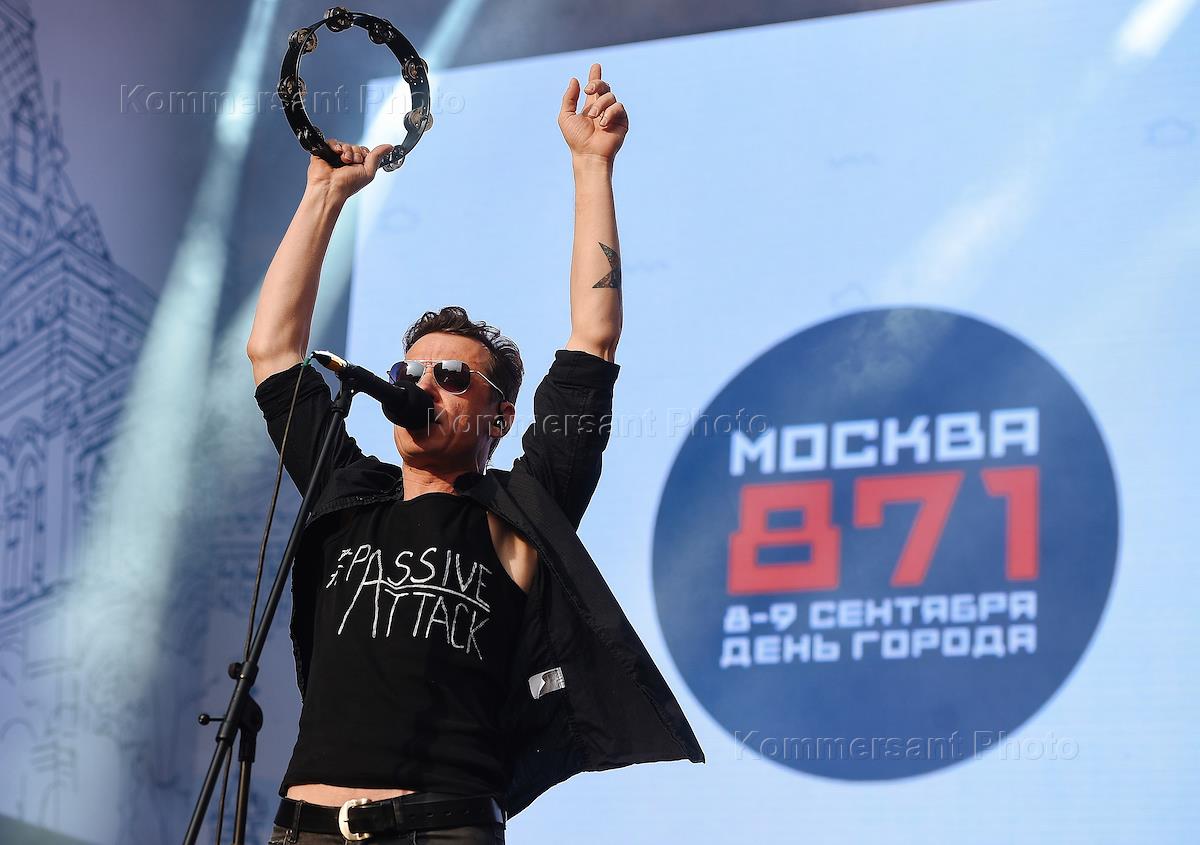 Празднование Дня города, 871 год со дня основания Москвы. Певец Найк Борзов (слева) во время выступления.