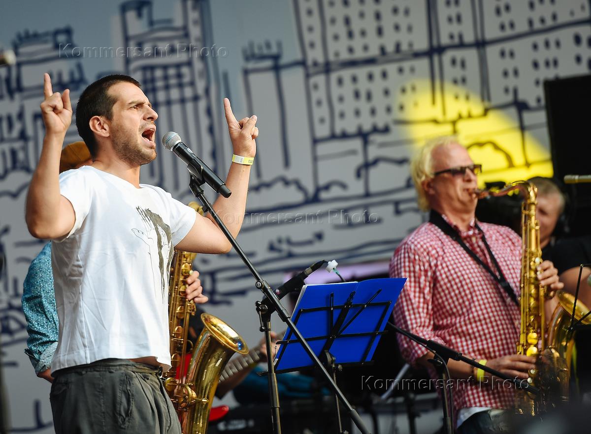 Празднование Дня города, 871 год со дня основания Москвы. Участник группы "Приключения Электроников" Андрей Шабаев-Маркин во время выступления.