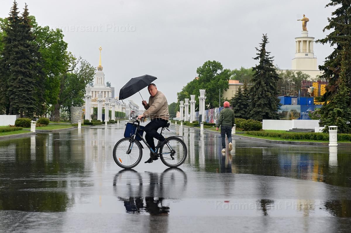 Genre photo. Arch of the main entrance of VDNH and the Central (Main) pavilion.