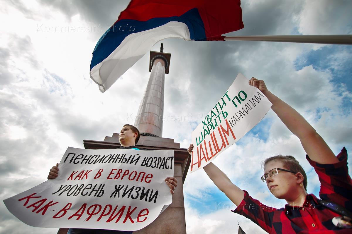 Митинг сторонников председателя партии "Партия прогресса" Алексея Навального против повышения пенсионного возраста у Дома Советов. Участники во время митинга.