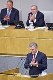 Пленарное заседание Государственной думы (ГД) России. Председатель ГД России Вячеслав Володин (в центре) во время заседания.