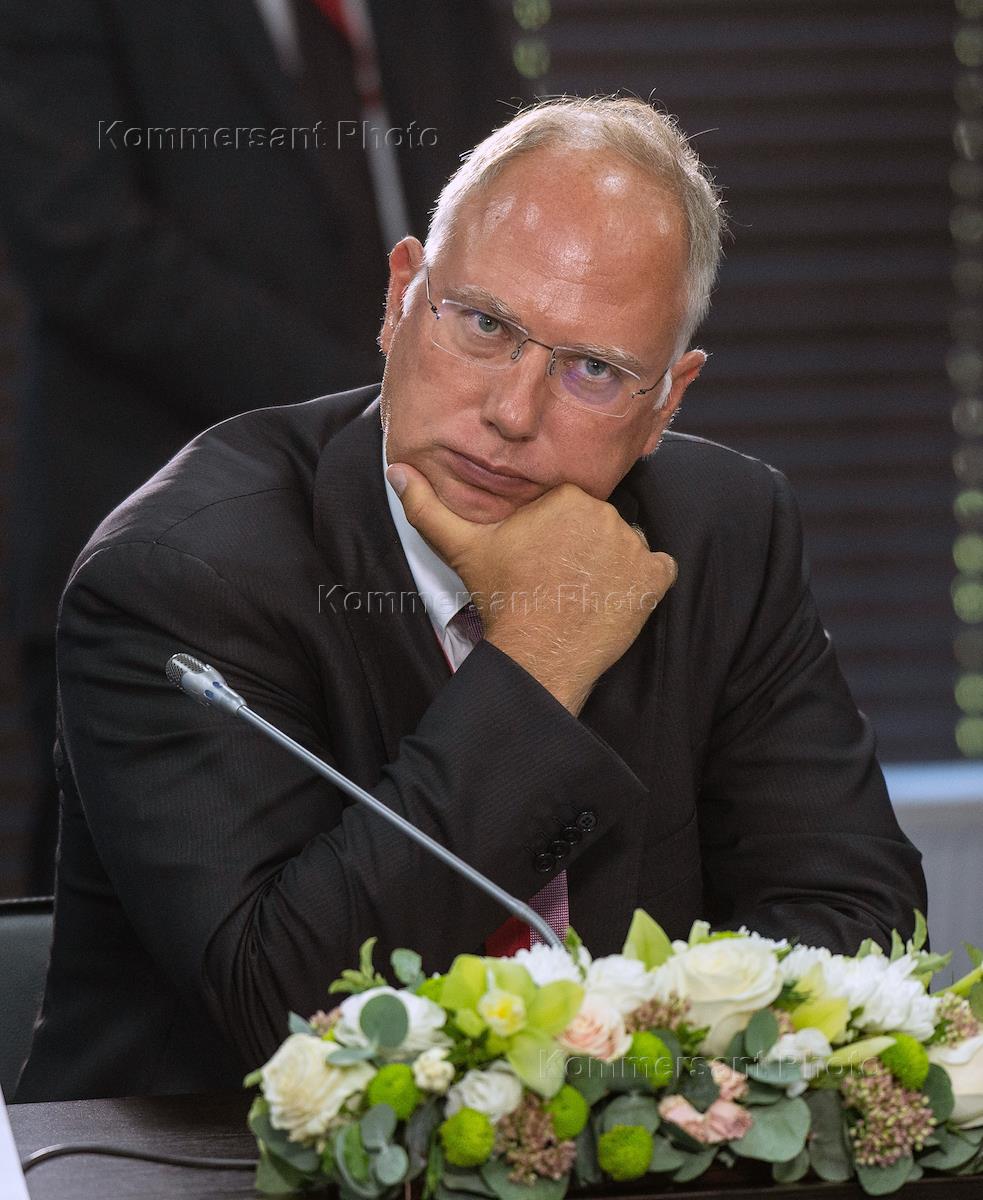 Рабочая поездка президента России Владимира Путина во Владивосток. IV Восточный экономическтй форум на территории Дальневосточного федерального университета (ДВФУ) на острове Русский. Министр транспорта России Евгений Дитрих во время встречи президента России Владимира Путина с представителями зарубежных деловых кругов.