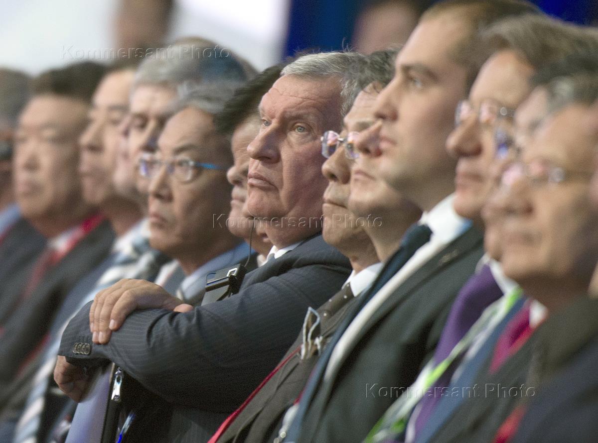 IV Восточный экономический форум (ВЭФ) 2018. День второй. Главный исполнительный директор, председатель правления ПАО "НК "Роснефть" Игорь Сечин (в центре) во время пленарного заседания "Дальниий Восток: расширяя границы возможностей".