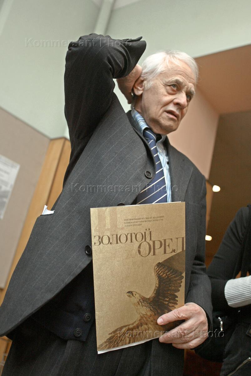 Режиссер Владимир Наумов на пресс-конференции, посвященной объявлению номинантов Национальной премии в области кинематографии "Золотой Орел" за 2004 год. Пресс-конференция прошла в конференц-зале Центрального Дома кинематографистов.