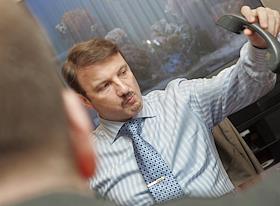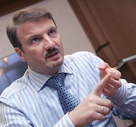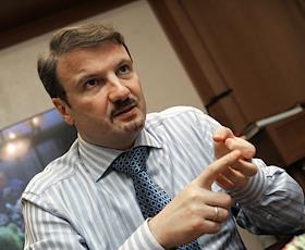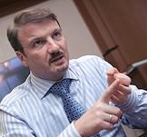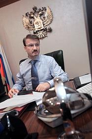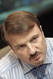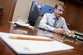 Russian Economic Development and Trade Minister German Gref is interviewed in his office.