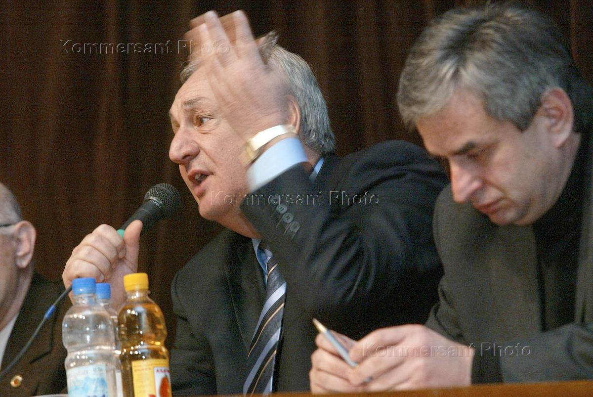Повторные выборы президента в Абхазии. Кандидат от оппозиции на пост президента Абхазии Сергей Багапш (слева) и премьер-министр Абхазии Рауль Хаджимба на встрече, посвященной президентским выборам в Абхазии.