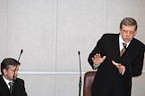 Председатель фракции "Родина" в Государственной Думе России Дмитрий Рогозин (слева) и член Комитета Государственной Думы России по промышленности, строительству и наукоемким технологиям Геннадий Селезнев (справа) на очередном думском заседании.