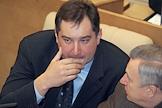 Председатель фракции "Родина" в Государственной Думе России Дмитрий Рогозин (слева) на очередном думском заседании.