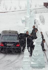 Ректор Московского Государственного университета (МГУ) им. М.В.Ломоносова Виктор Садовничий (слева), заместитель руководителя Администрации Президента России Джахан Поллыева (вторая слева), Президент России Владимир Путин (в центре), мэр Москвы Юрий Лужков (справа) и первый вице-премьер правительства Москвы по архитектуре, строительству, развитию и реконструкции Владимир Ресин (второй справа) на торжественной церемонии открытия нового здания Фундаментальной библиотеки Московского государственного университета имени М.В.Ломоносова.