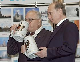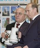 Мэр Москвы Юрий Лужков (слева), ректор Московского Государственного университета (МГУ) им. М.В.Ломоносова Виктор Садовничий (второй слева), Президент России Владимир Путин (второй справа) и президент Киргизии Аскар Акаев (справа) на торжественной церемонии открытия нового здания Фундаментальной библиотеки Московского государственного университета имени М.В.Ломоносова.