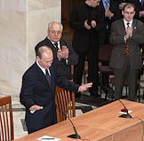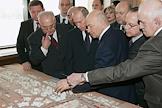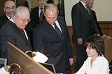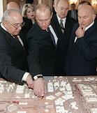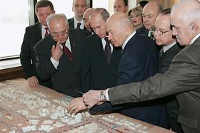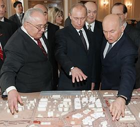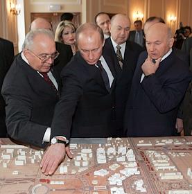 Ректор Московского Государственного университета (МГУ) им. М.В.Ломоносова Виктор Садовничий (второй слева), Президент России Владимир Путин (в центре), мэр Москвы Юрий Лужков (четвертый справа) и первый вице-премьер правительства Москвы по архитектуре, строительству, развитию и реконструкции Владимир Ресин (третий справа) на торжественной церемонии открытия нового здания Фундаментальной библиотеки Московского государственного университета имени М.В.Ломоносова.