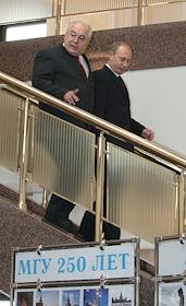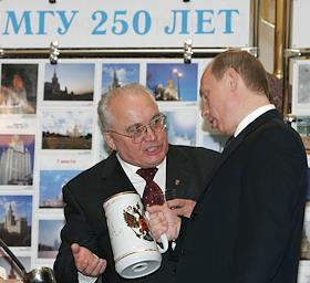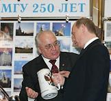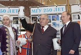 Ректор Московского Государственного университета (МГУ) им. М.В.Ломоносова Виктор Садовничий (второй слева), Президент России Владимир Путин (справа) и президент Киргизии Аскар Акаев (слева) на торжественной церемонии открытия нового здания Фундаментальной библиотеки Московского государственного университета имени М.В.Ломоносова.