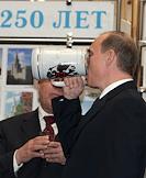 Ректор Московского Государственного университета (МГУ) им. М.В.Ломоносова Виктор Садовничий (слева) и Президент России Владимир Путин (справа) на торжественной церемонии открытия нового здания Фундаментальной библиотеки Московского государственного университета имени М.В.Ломоносова.