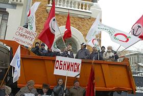 Митинг и пикет жителей г.Обнинска и представителей общественных организаций и политических партий - против отмены выборов мэров в Калужской области перед представительством Калужской области