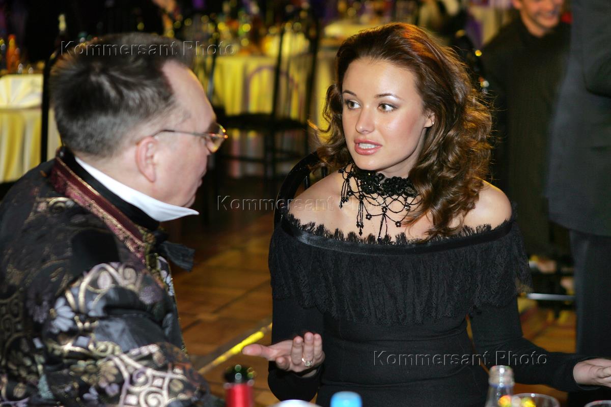 Russian pop singer Lolita Milyavskaya (left) and State secretary of the Union of Russia and Byelorussia Pavel Borodin (right) attend the Style of the Year 2004 awards ceremony. The event was held in the Rossiya concert hall.