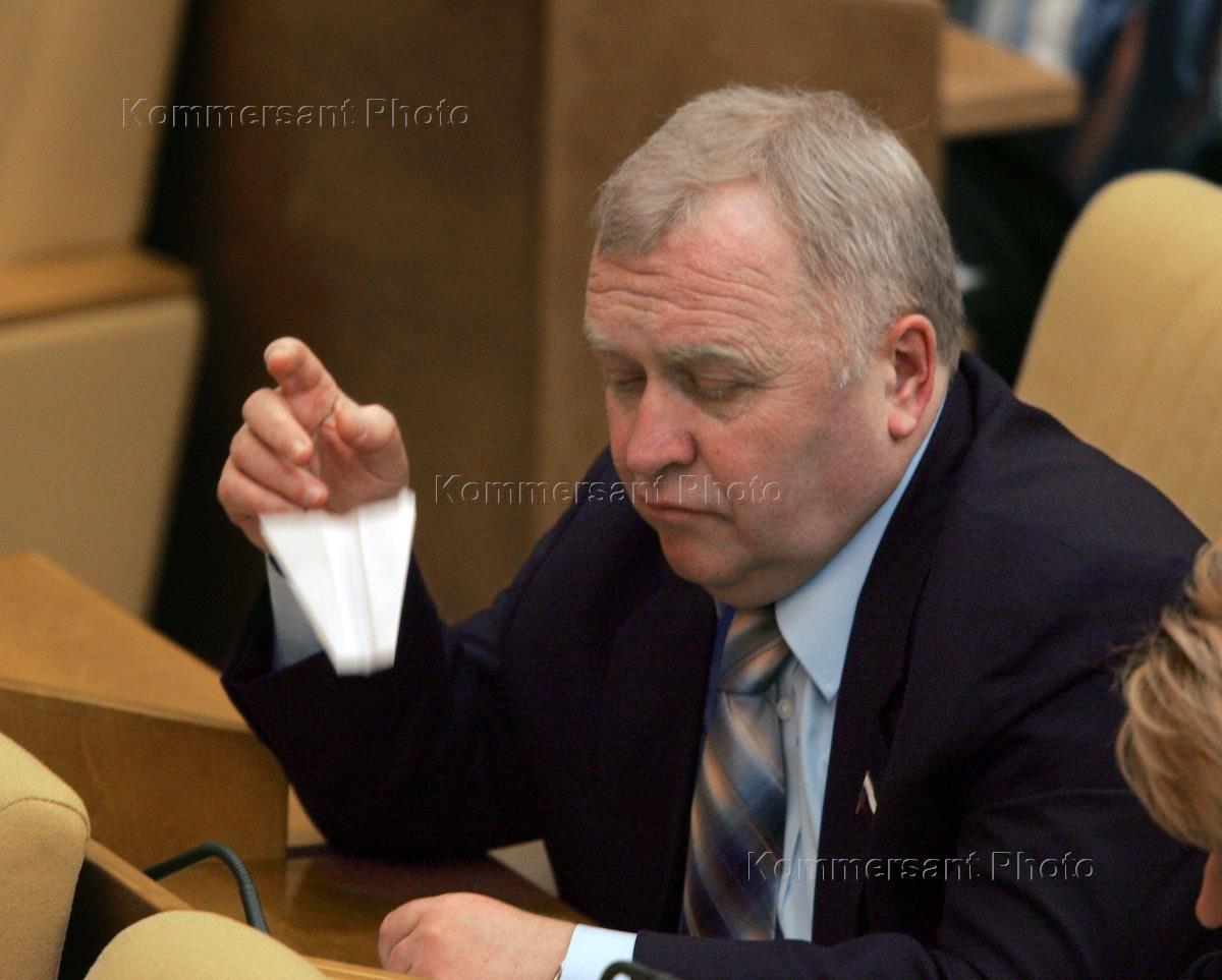 Член фракции Коммунистической партии России (КПРФ) в Государственной Думы России Виктор Илюхин на очередном думском заседании.