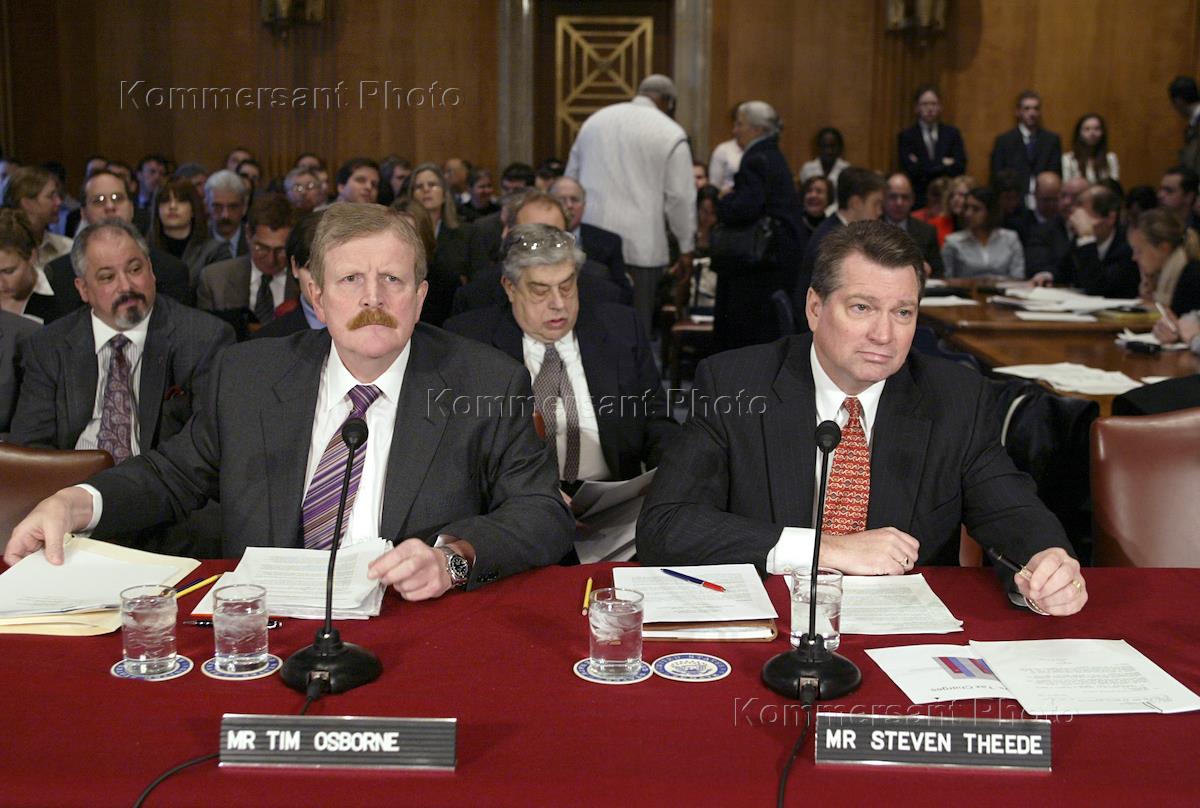 Председатель правления российской нефтяной компании "ЮКОС" Стивен Тиди (справа) на слушаниях в сенатском комитете по иностранным делам, посвященных ситуации в области демократии в России.