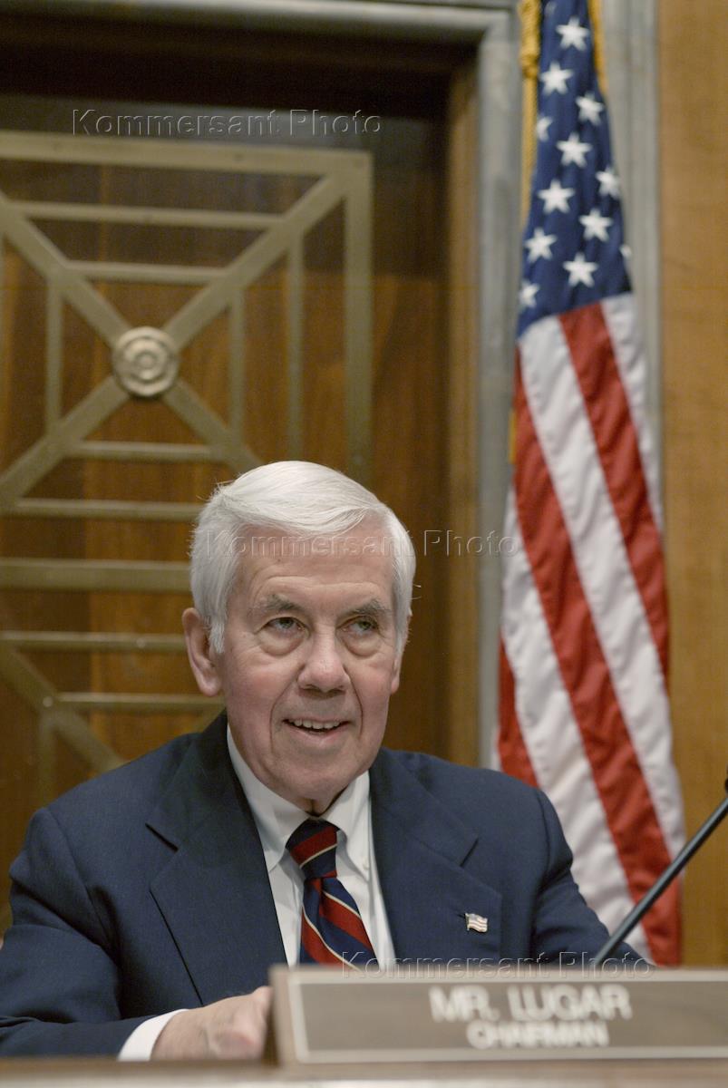 Председатель сенатского комитета по иностранным делам сенатор-республиканец Ричард Лугар на слушаниях в сенатском комитете по иностранным делам, посвященных ситуации в области демократии в России.