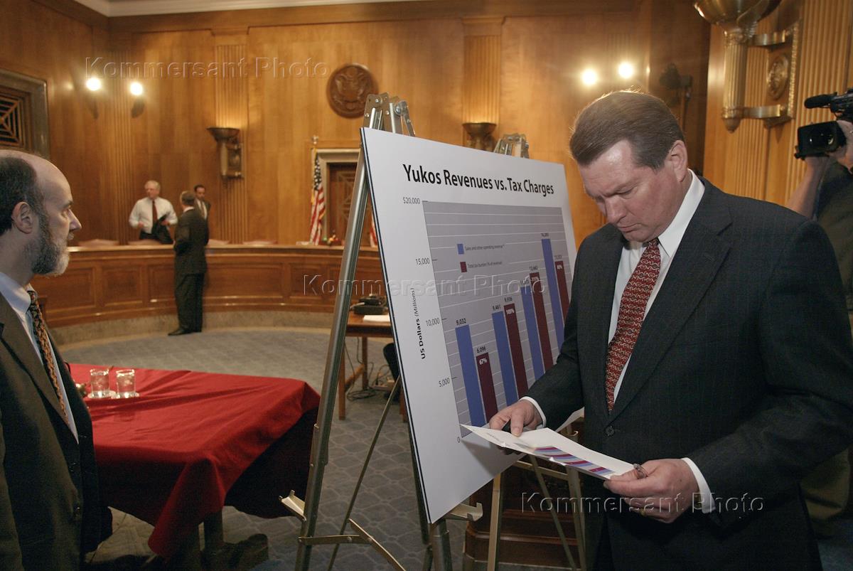 Председатель правления российской нефтяной компании "ЮКОС" Стивен Тиди (справа) на слушаниях в сенатском комитете по иностранным делам, посвященных ситуации в области демократии в России.