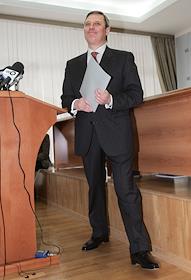 Бывший председатель Правительства России Михаил Касьянов на пресс-конференции, на которой он сообщил о своем возможном участии в президентских выборах в 2008 году. Пресс-конференция прошла в бизнес-центре.