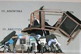 Подготовка к началу пресс-конференции бывшего председателя Правительства России Михаила Касьянова в бизнес-центре.