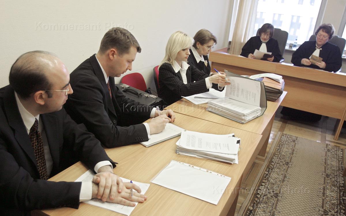Заседание Федерального арбитражного суда Московского округа по рассмотрению кассационной жалобы Издательского дома (ИД) "Коммерсантъ" на решение арбитражного суда столицы и Девятого арбитражного апелляционного суда о взыскании в пользу "Альфа-банка" более 300 млн рублей. Руководитель юридической службы ИД "Коммерсантъ" Георгий Иванов (слева), адвокат ИД "Коммерсантъ" Павел Астахов (в центре).