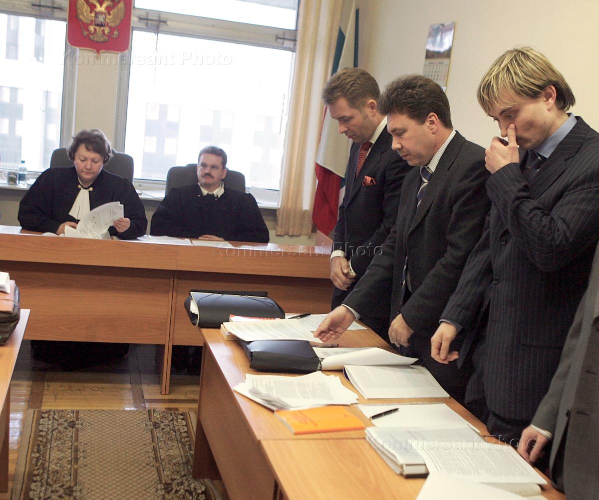 Заседание Федерального арбитражного суда Московского округа по рассмотрению кассационной жалобы Издательского дома (ИД) "Коммерсантъ" на решение арбитражного суда столицы и Девятого арбитражного апелляционного суда о взыскании в пользу "Альфа-банка" более 300 млн рублей. Руководитель юридической службы ИД "Коммерсантъ" Георгий Иванов (слева), адвокат ИД "Коммерсантъ" Павел Астахов (в центре).