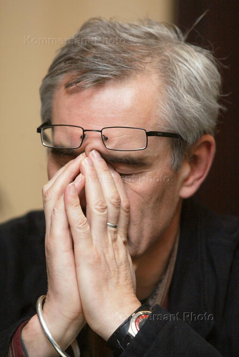 Пресс-конференция, посвященная представлению нового проекта режиссера Сергея Бодрова-старшего "Монгол. Часть 1", в отеле "Марриотт Тверская". Режиссер Сергей Бодров-старший (слева) и продюсер Сергей Сельянов (справа) после пресс-конференции.