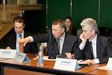 Директор Института корпоративного предпринимательства Сергей Чернышев (слева), заместитель председателя Государственной Думы России, лидер Либерально-демократической партии России (ЛДПР) Владимир Жириновский (в центре) и директор Центра политологических программ "Горбачев-Фонда" Виктор Кувалдин (справа) на международной конференции "Власть и свобода: 20 - летие демократического эксперимента в СССР и России". Конференция прошла в "Президент-Отеле".
