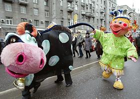 Празднование "Широкой масленицы" в центре столицы. Гулянья прошли от Триумфальной площади до Васильевского спуска.