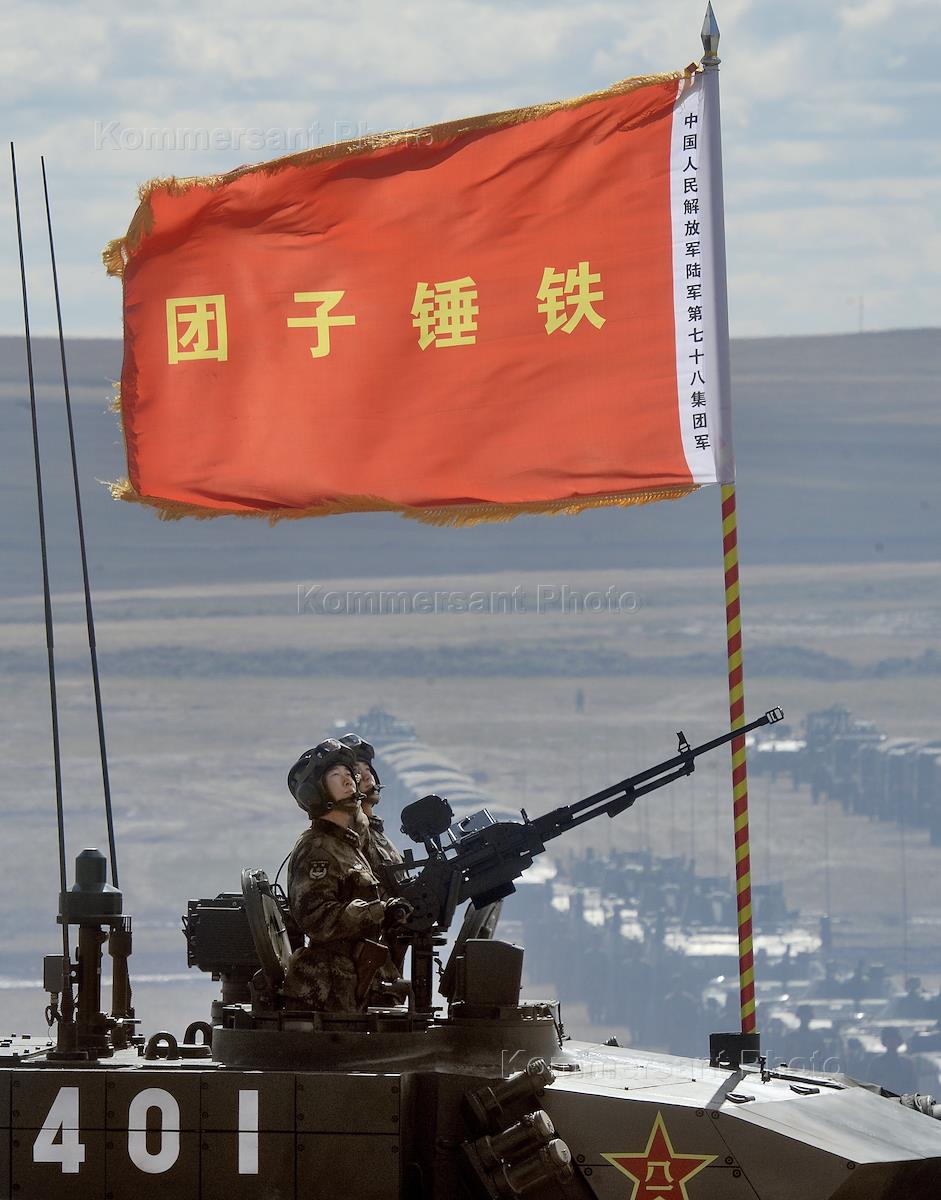 Military exercises "East 2018" at the site Tsugol. The parade of motorized and aviation equipment, participating in the military maneuvers of the Russian and Chinese armed forces. Russian President Vladimir Putin (left) during the parade.