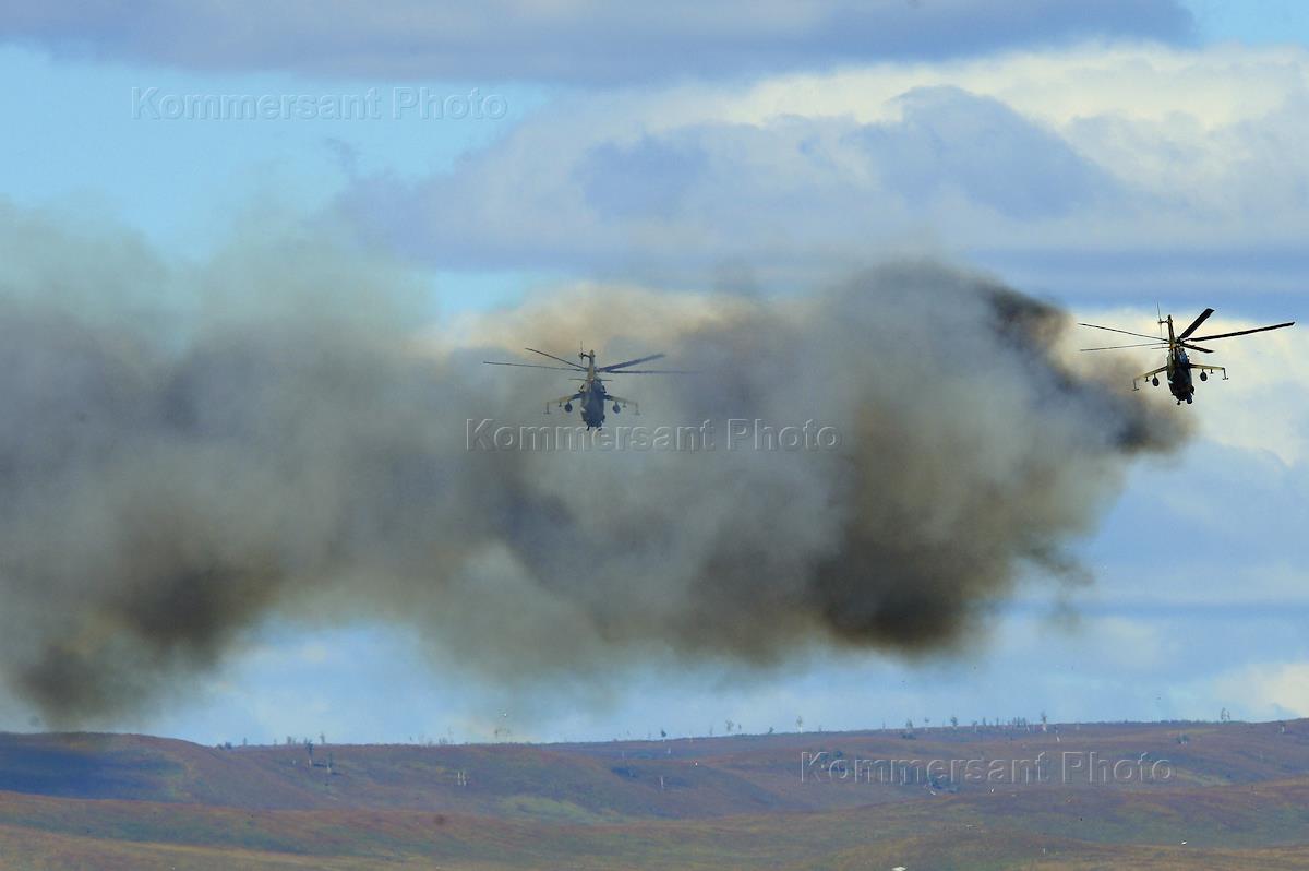 Military exercises "East 2018" at the site Tsugol. The parade of motorized and aviation equipment, participating in the military maneuvers of the Russian and Chinese armed forces. Russian Defense Minister Sergei Shoigu (right) and Russian President Vladimir Putin (left) during the parade.